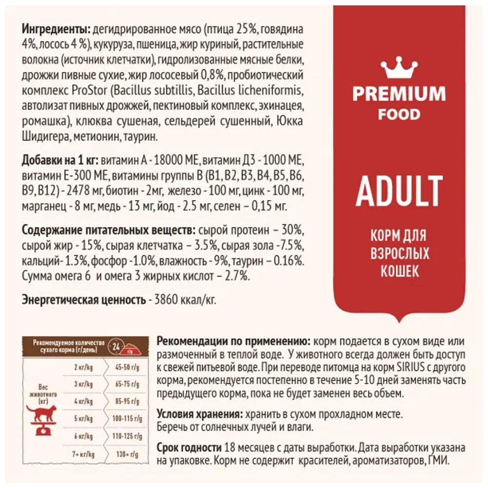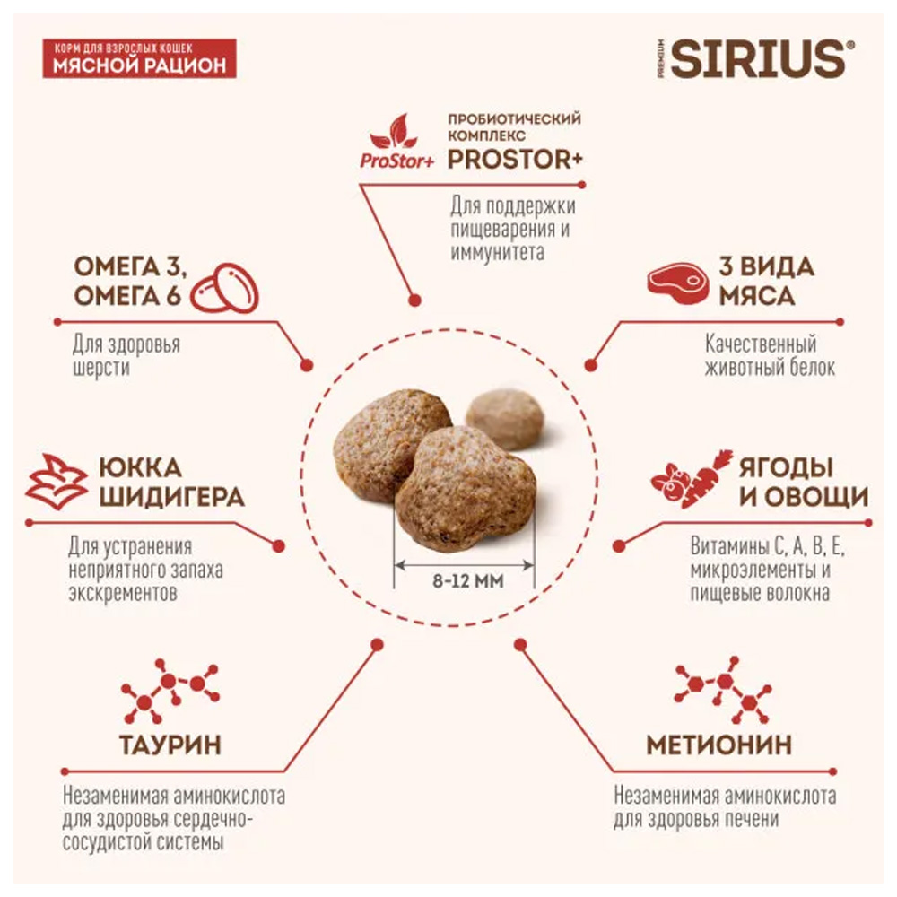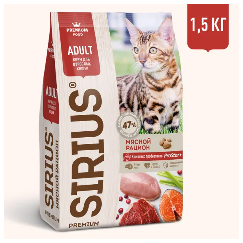 Sirius сухой корм для взрослых кошек Мясной рацион - 1.5кг