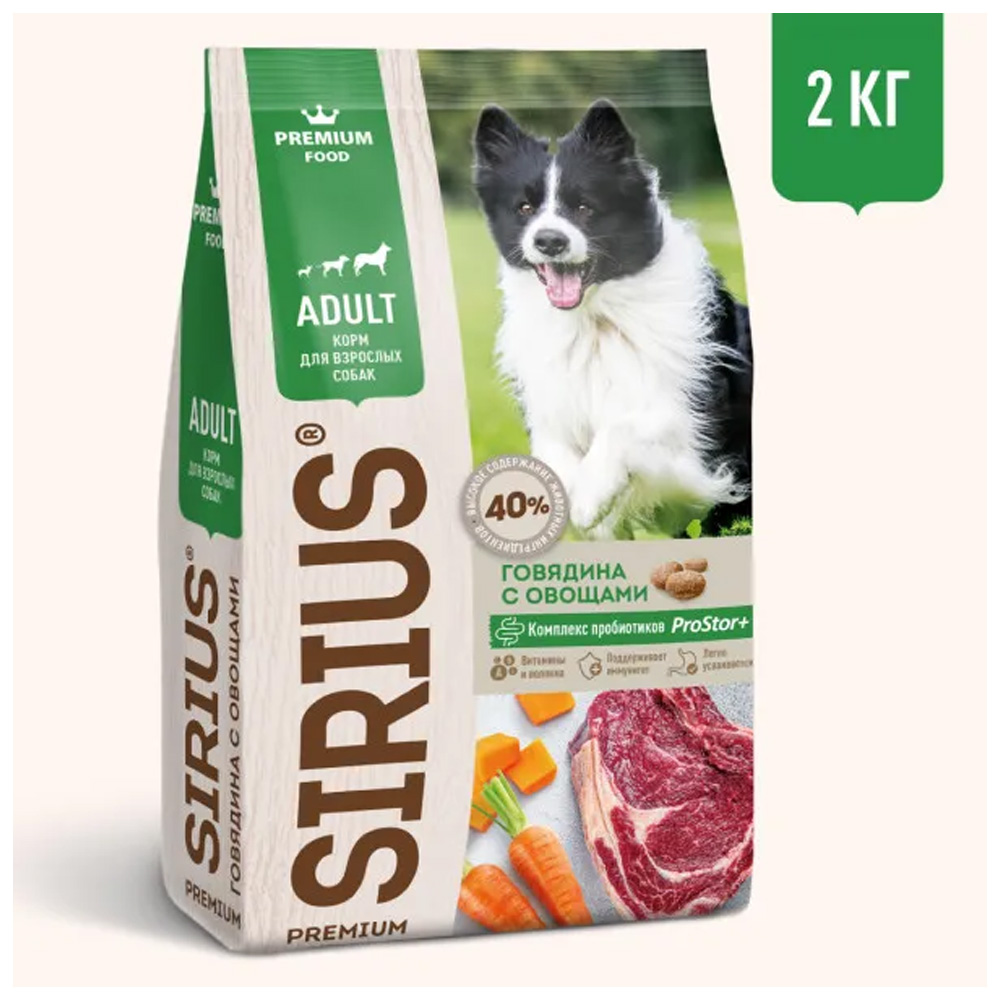 Sirius сухой корм для взрослых собак, говядина с овощами - 2кг