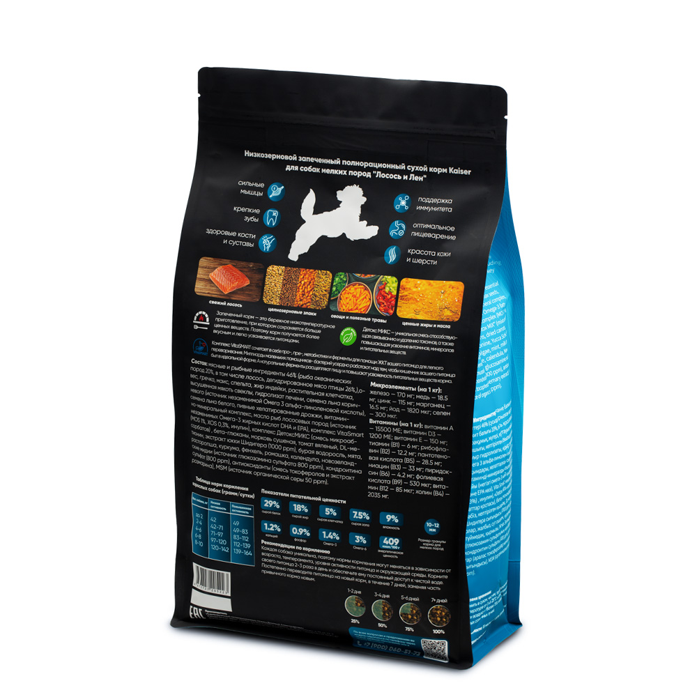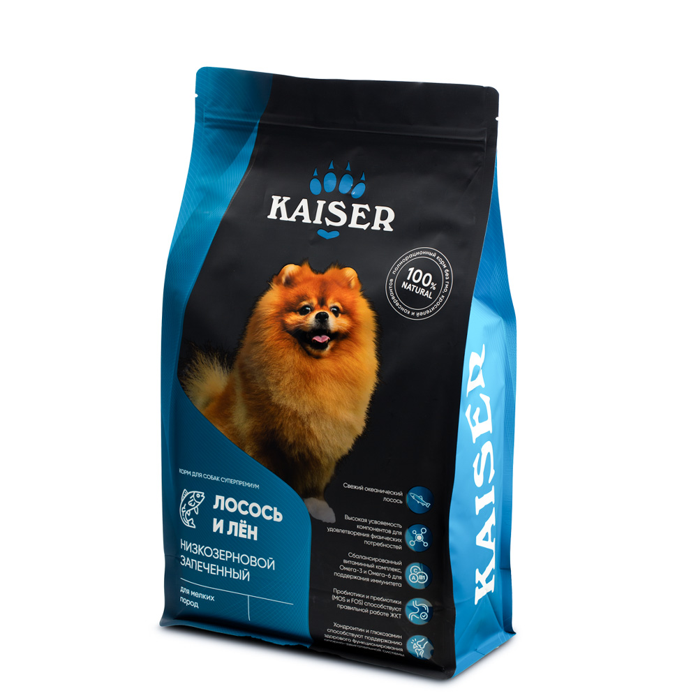 Сухой корм Kaiser для взрослых собак мелких пород Лосось и лен 2.5кг